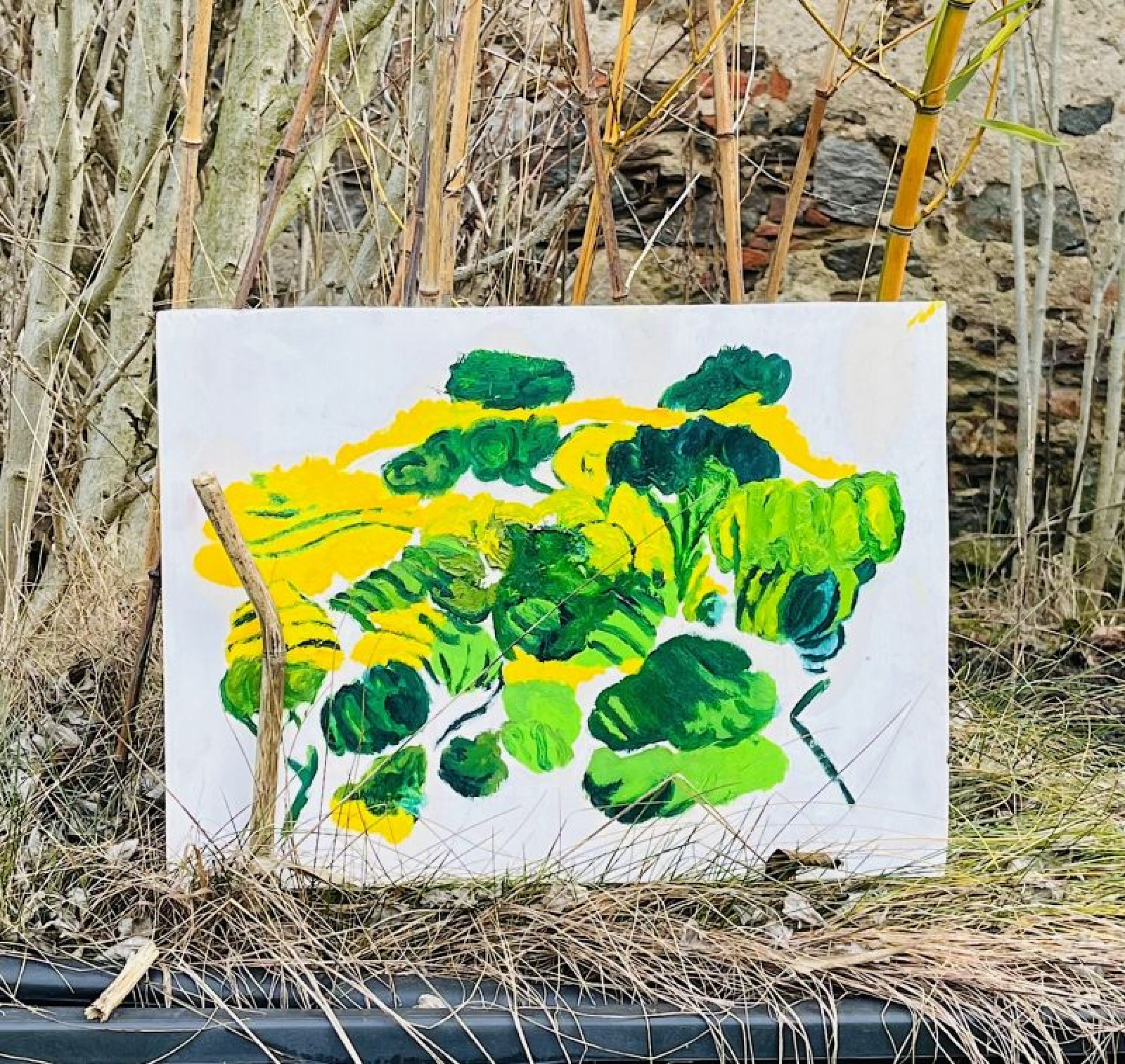 Heute versenke ich mich erneut ganz in die Welt von Ludwig van Beethoven, in seine Musik und sein Leben. Bereits am frühen Morgen lasse ich seine 7. Sinfonie den Raum fluten, dabei male ich mit Öl auf Sperrholz. Den hölzernen Bildträger habe ich bewusst gewählt: Sperrholz gibt mir die Freiheit, später auszuschneiden, zu formen, dem Bild eine organische Gestalt zu geben – so wie Beethoven seine Musik nicht als statisches Objekt, sondern als formbare, lebendige Kraft verstand.