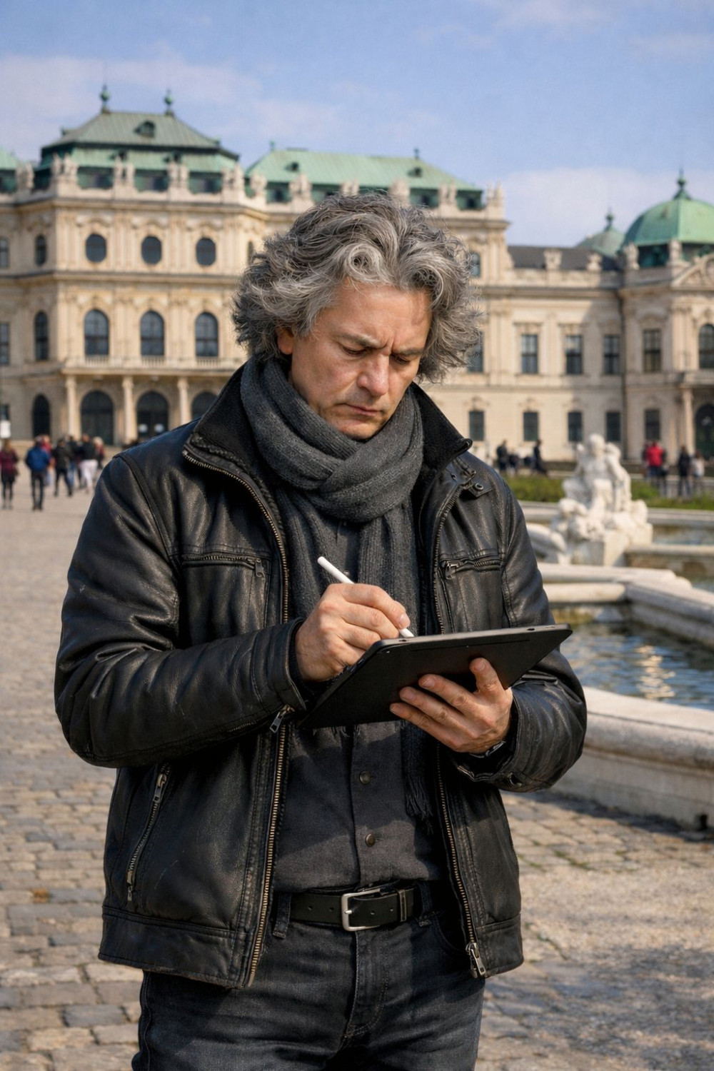 Eben stand ich im Belvedere. Ein Schloß wie ein steinerner Paukenschlag! Ich bahnte mir den Weg durch die Massen der Gaffer, die ihre schwarzen Glas-Götzen wie Monstranzen vor sich hertrugen. Ich fluchte! Ich wollte diesen Stromkasten hier an der Wand zerschmettern! Was sucht der Geist im Prunk der Touristen-Mode?