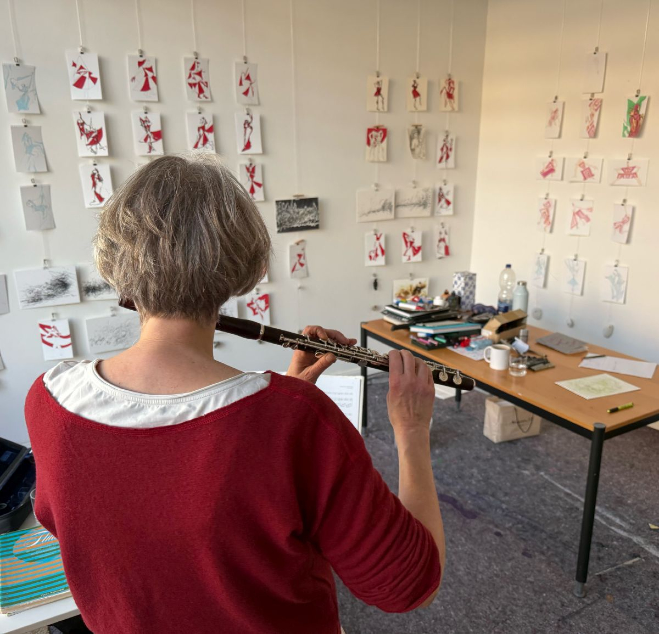 Wir inspirierten uns gegenseitig: Mal zog sie eine Pause in die Länge, um meinen Zeichenstift solo zu hören, mal zeichnete ich in der Luft, um nur sie zu hören - mal den Klang ihrer Flöte, mal ihre Atmung, mal ihr Summen. Je freier sie wurde, desto freier wurde ich und umgekehrt.